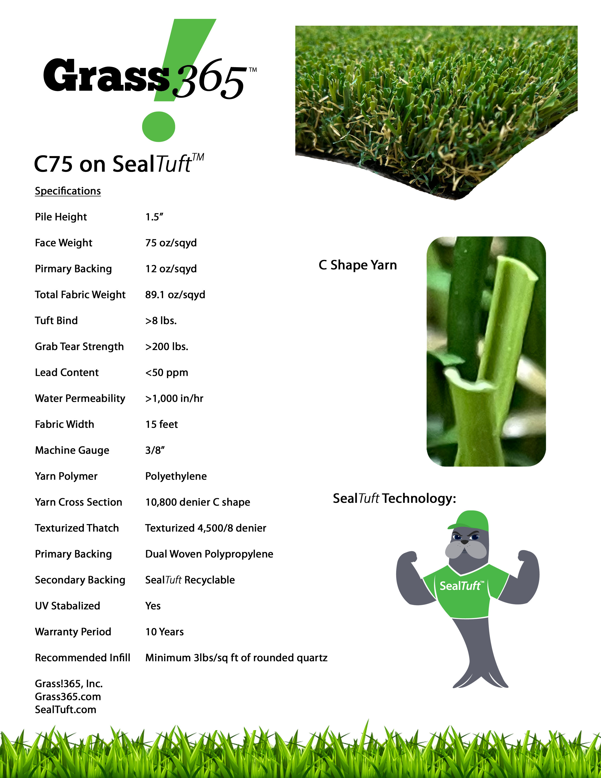 C75 Synthetic Grass SealTuft Lawn